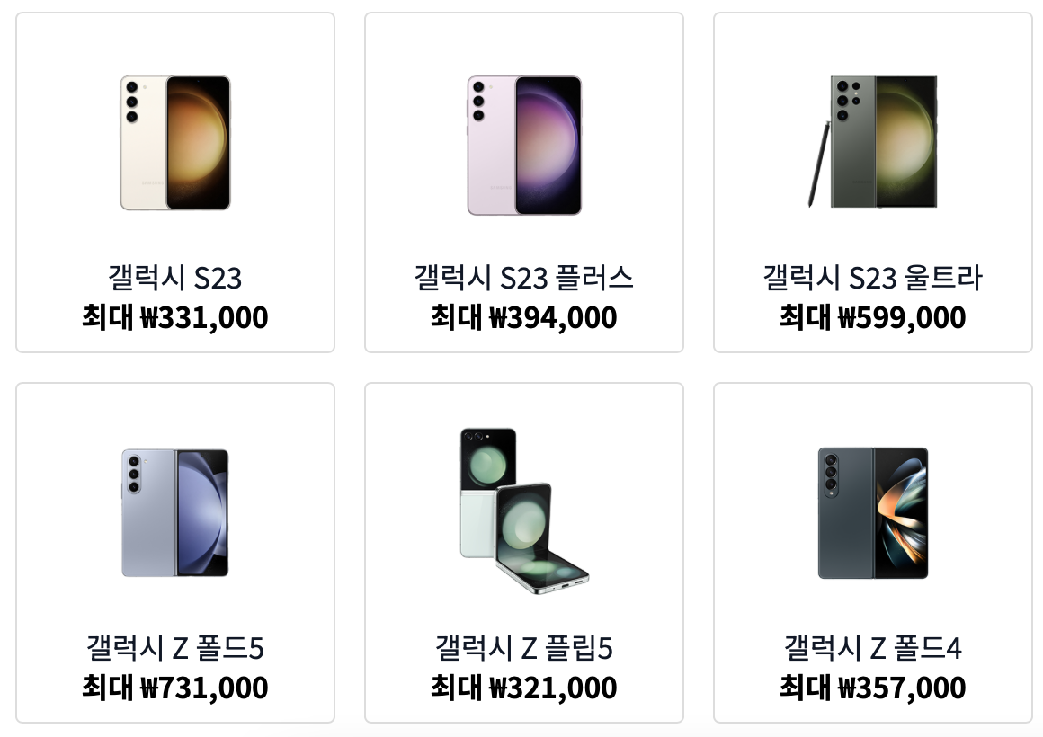 스마트폰 종류별 최대 금액은?